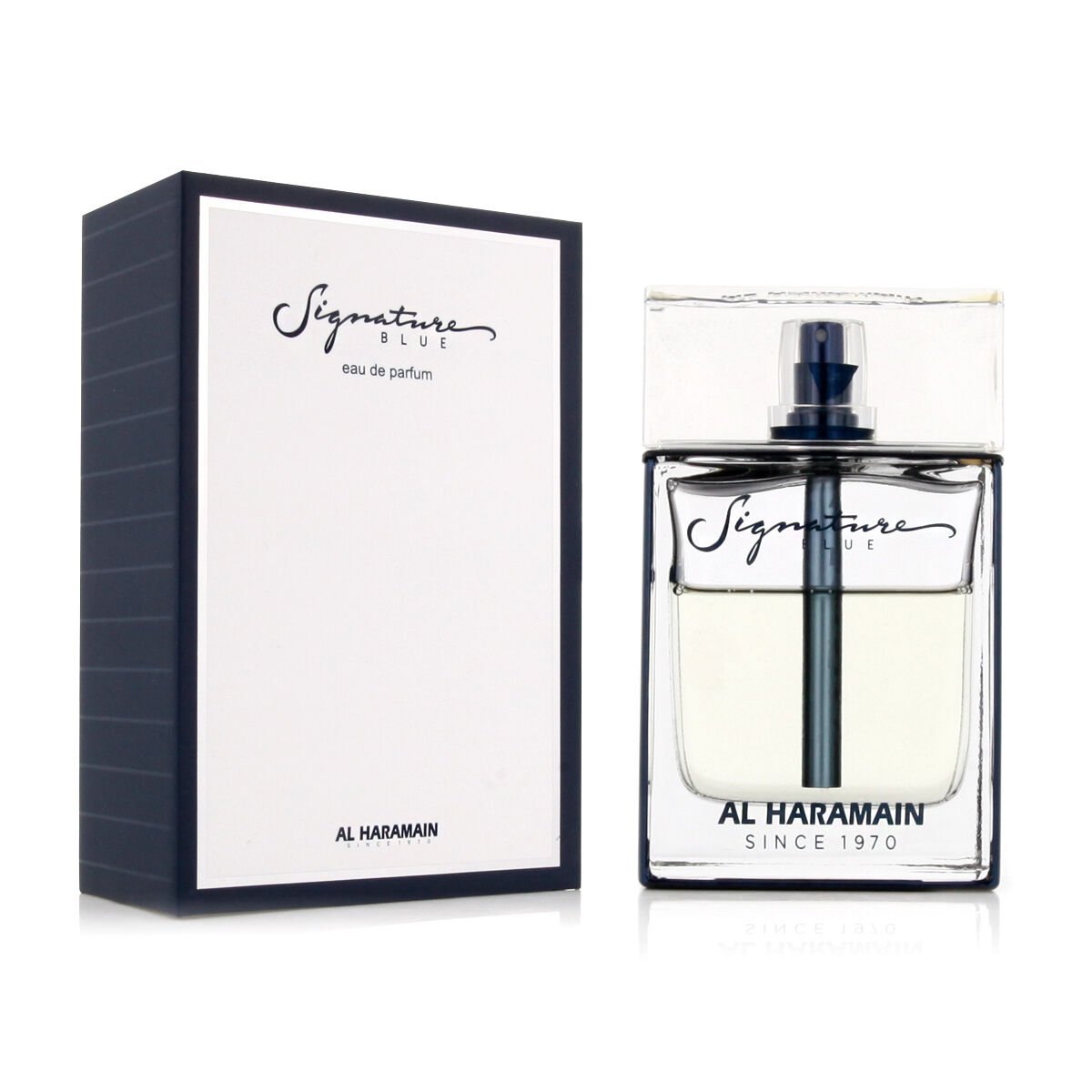 La 100% originale Herre parfyme Al Haramain EDP Signature Blue (100 ml) overraske deg og definere personligheten din ved å bruke denne eksklusive parfymen for menn med en unikt, personlig parfyme. Oppdag det 100% originale Al Haramain produktet!